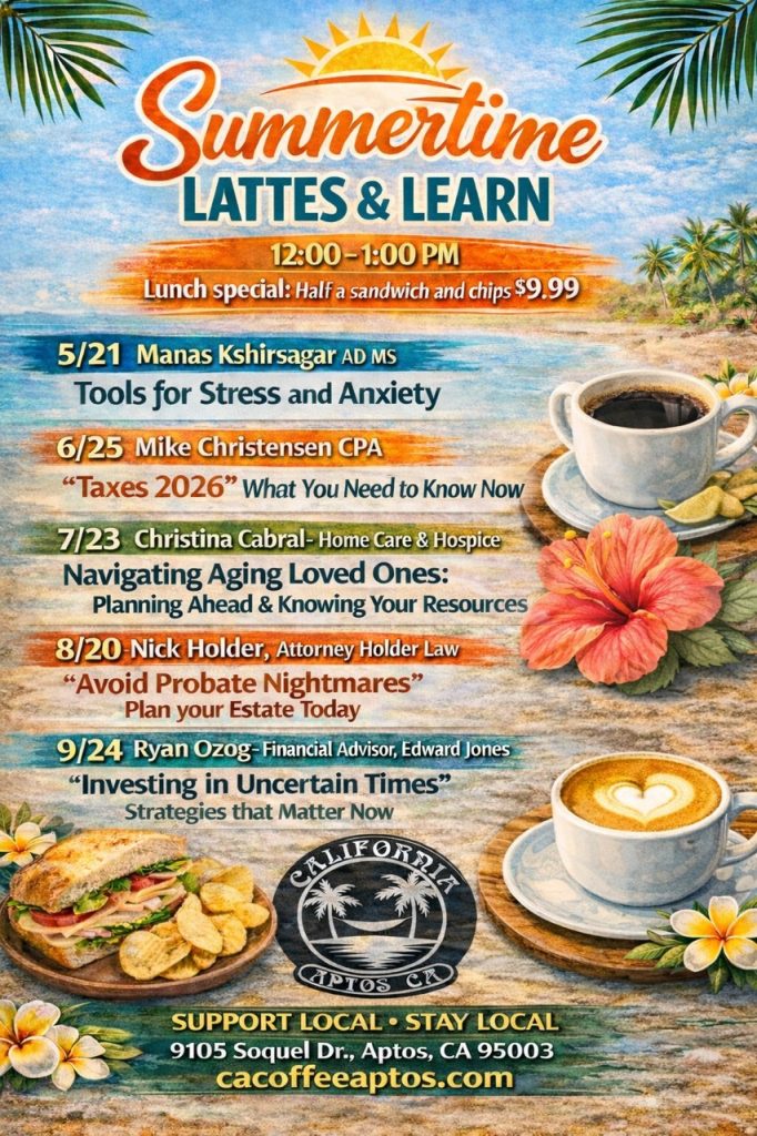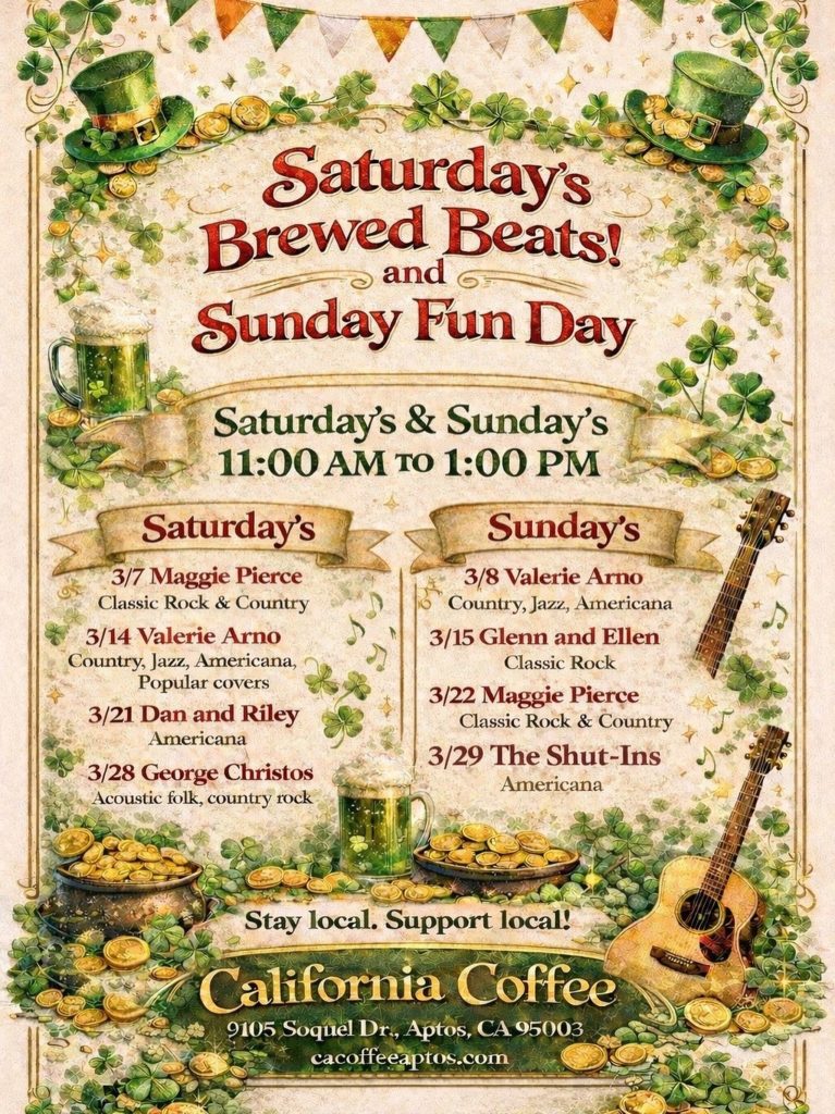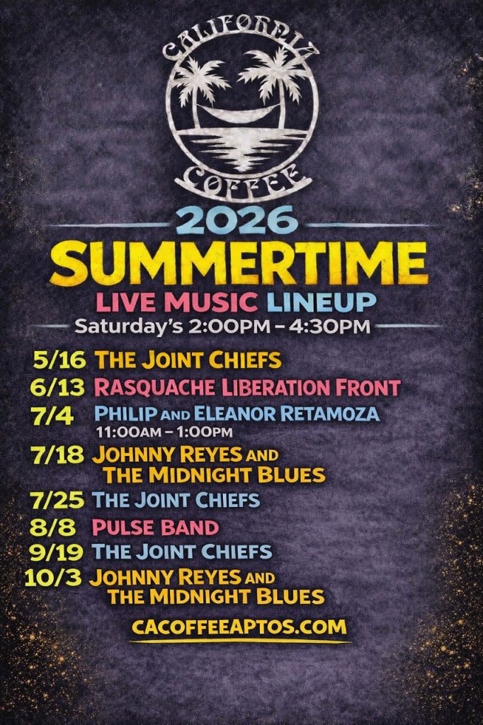 At California Coffee, we believe coffee is more than just a drink — it’s an experience that brings people together. That’s why we’re always working to create moments that connect, inspire, and celebrate our community. Our upcoming events are designed with you in mind, offering a little something for everyone. Whether you’re looking to discover your next favorite local band, dive into the rich world of coffee through curated tastings, or simply enjoy a cozy evening surrounded by art, conversation, and creativity, we have something brewing just for you.